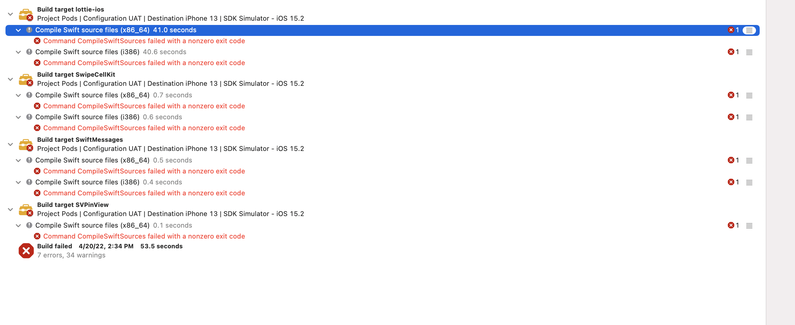 my application was running successfully before but from yesterday i cannot able to run my application as i'm getting different issue in pods. i checkout previous running code also but it also giving me same error. i even try to checkout repo again and install xcode again but it also didnot help. can anyone please help me in this regard. thanks.