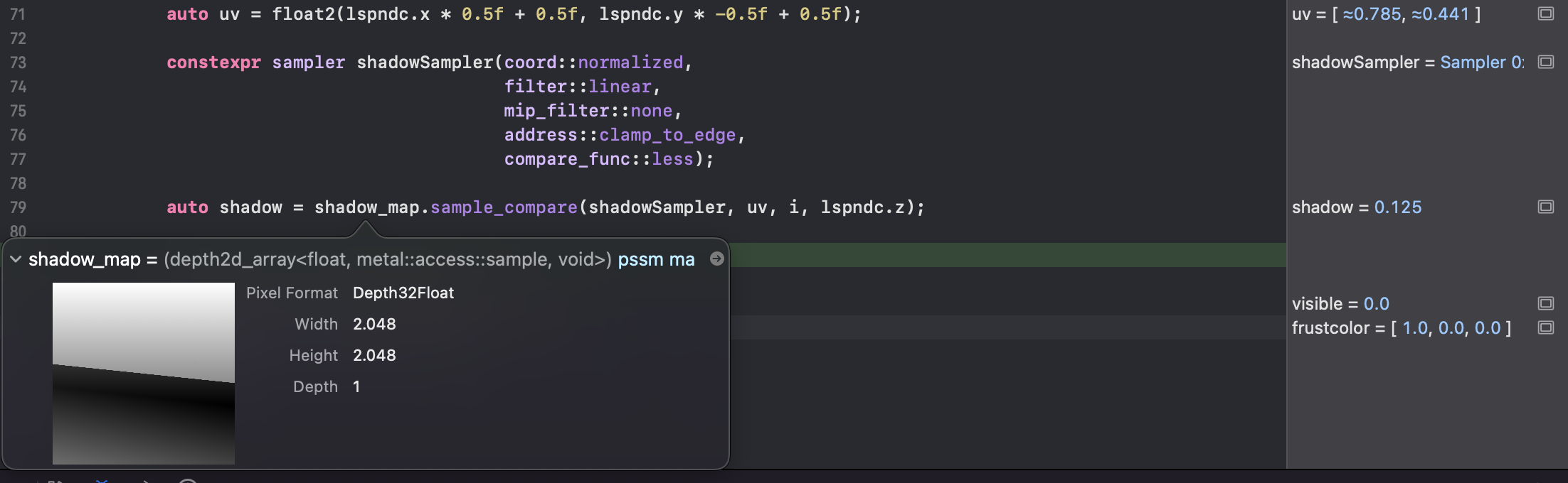 Sorry, in the image is not seen, but "i == 0" and shadow_map is a texture with four slices.