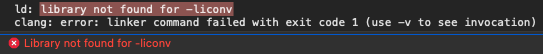 我升级到xcode 15后 报 Library not found for -liconv.2.4.0 如何解决??? 添加-ld64 不起作用