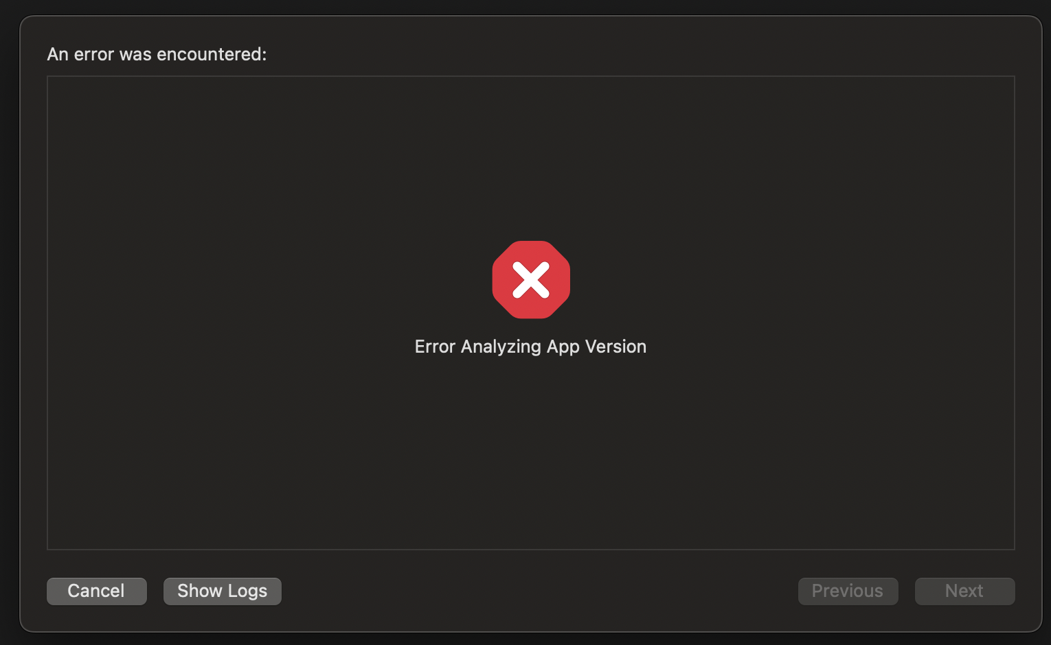 I was distributing my flutter app for TestFlight and this message came out, saying Error Analyzing App Version, without providing any details.