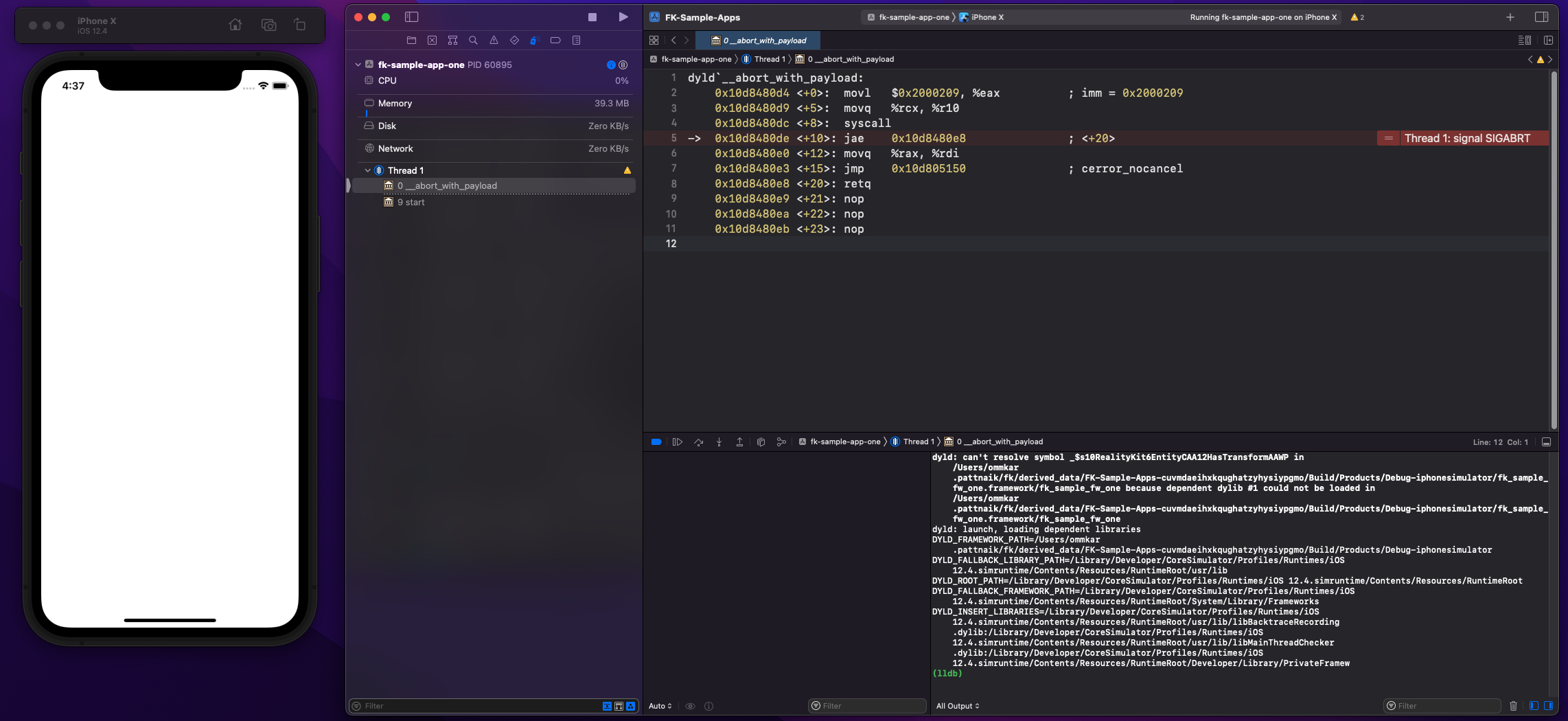 I have a framework which imports RealityKit. Minimum deployment target for the framework is iOS 13 and the app which uses the framework has iOS 12 as minimum deployment. RealityKit and RealityFoundation is set to optional in the build phases of the framework and the framework is optional in the app as well. But on launching the app in iOS 12 simulator I keep getting the following crash.