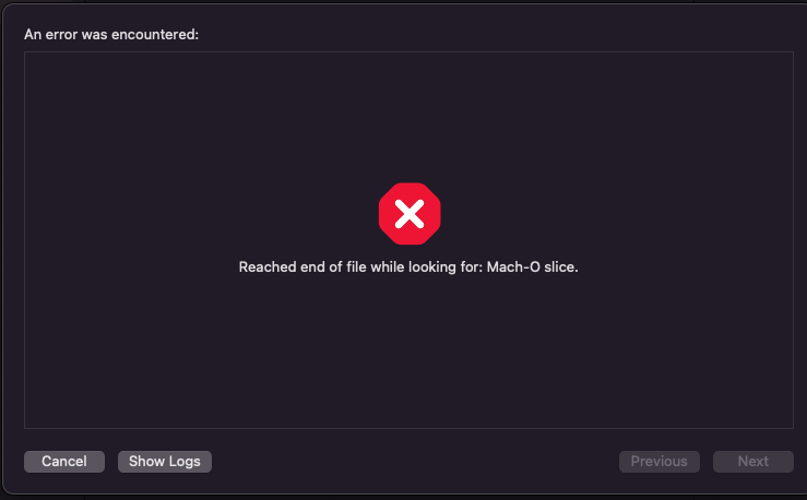Hmmm, that’s weird. The most likely explanation is that there’s a malformed Mach-O file within your Xcode archive. Open a Terminal window, change into the Products/Applications directory within the archive, and do this: