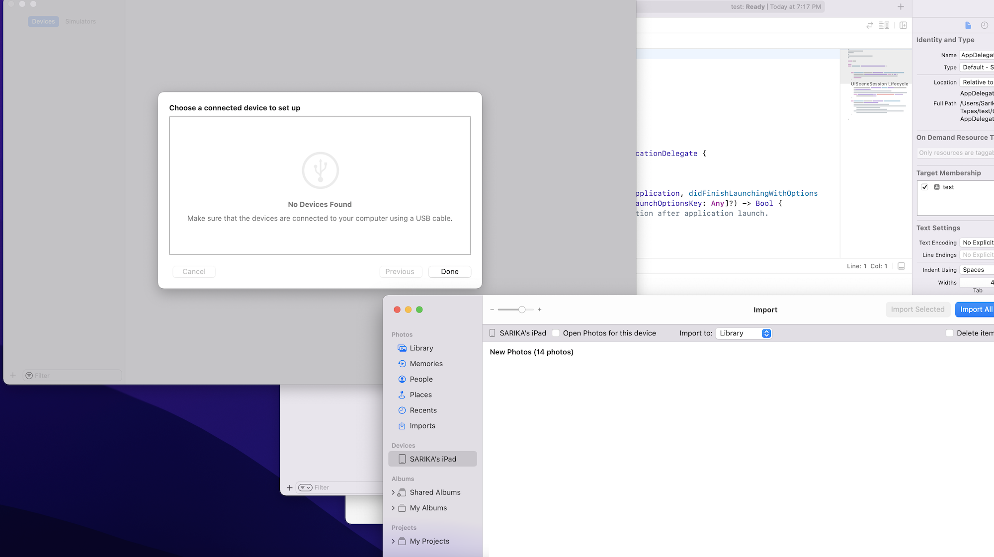 When I connect the iPad with my MacBook pro the iPad is not visible on the device and simulator option in Xcode. When I connect the device it just blinks and disappeared from the device and simulator option. I check the photos apps there I am able to see the device but in the Xcode, the device is not showing.