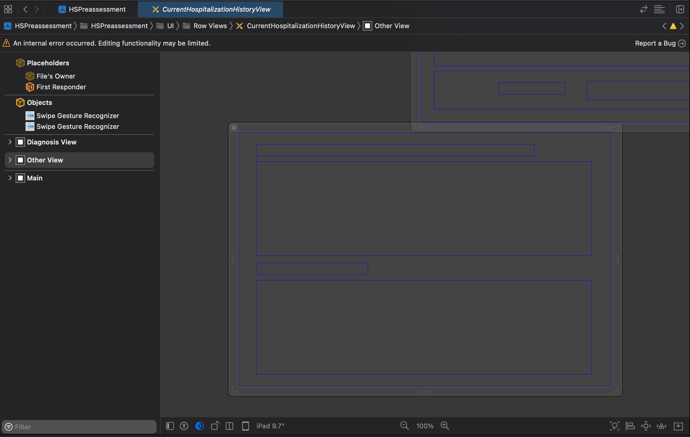 An internal error occurred. Editing functionality may be limited. Report a Bug