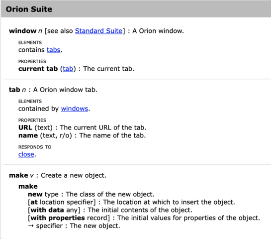 I have tried variations, listed at the end of this post. Orion does have basic AppleScript support: