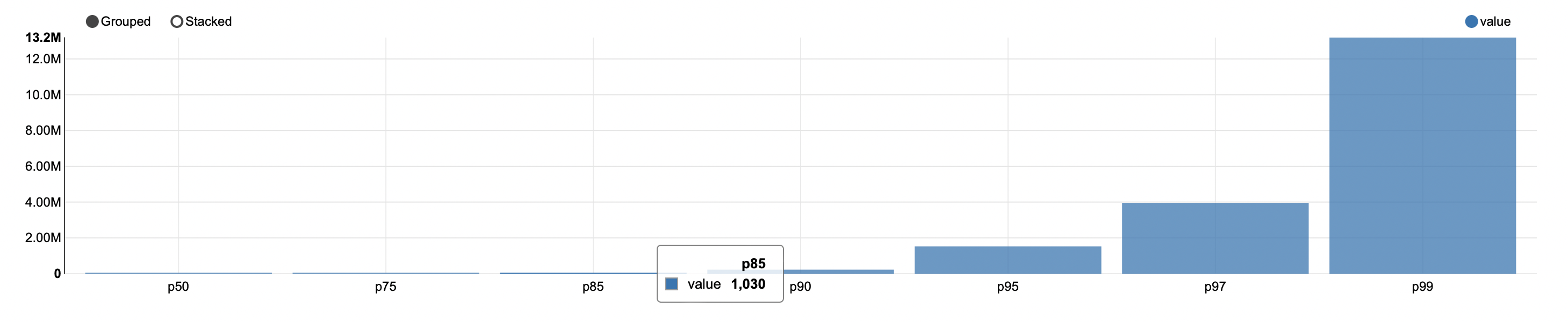 p85 – 1030ms | p95 – 1.52 million ms | p99 – 13.2 million ms (3.5 hours)