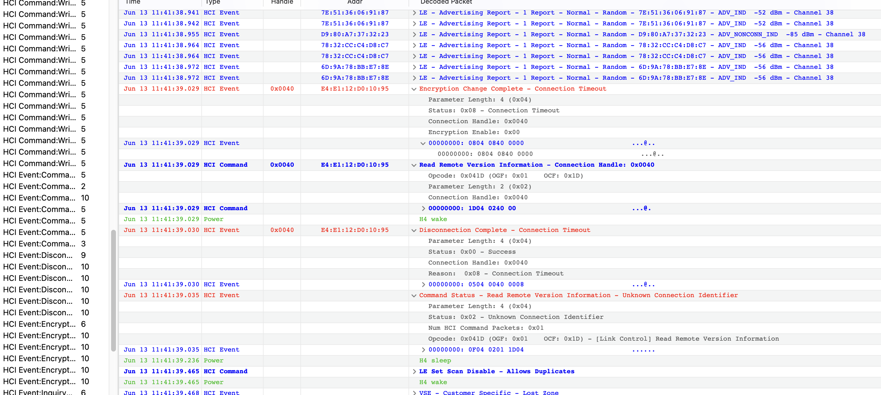 We used Bluetooth Connection in our project, but in iOS 16 beta version, we found that the first Connection pairing can be connected normally, but the Connection will fail again after disconnection. The system HCI log shows "Encryption Change completion-Connection Timeout".