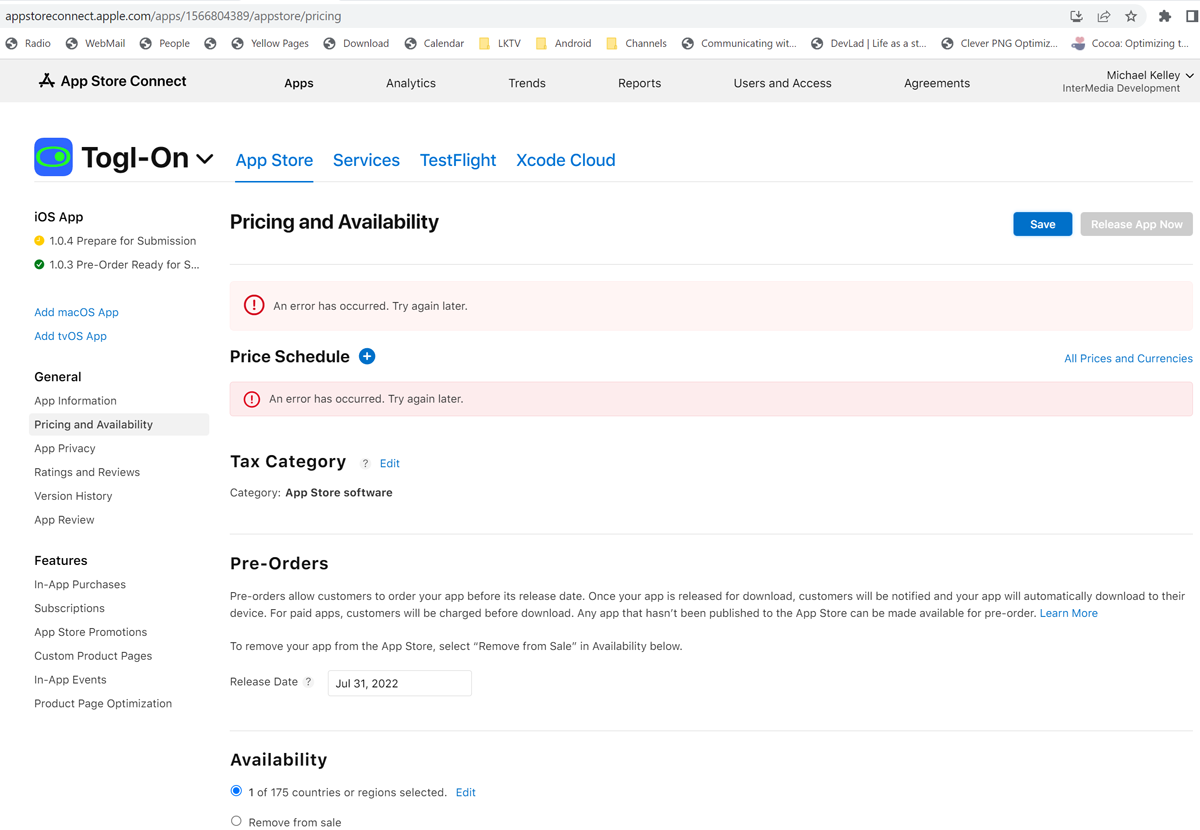 We have been attempting to change the pre-order release date on our Togl-On app that is set to be released tomorrow. We need to add a couple months to this release date.