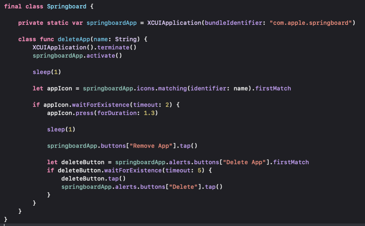 Getting error in XCUIApplication.launch() after deleting app between tests using Springboard.