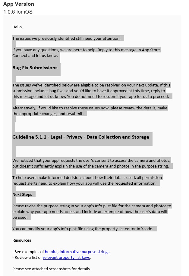 My app is not approved (Data Collection and Storage), in the next update I can fix the error.