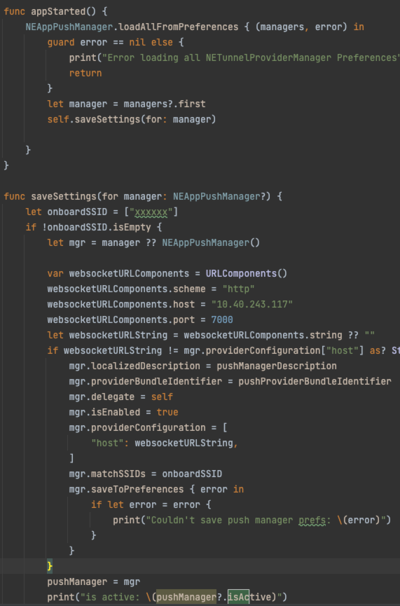 Now I'm starting the process below from AppDelegate. it didn't come out any error, but NEAppPushManager didn't activate eventually as well.