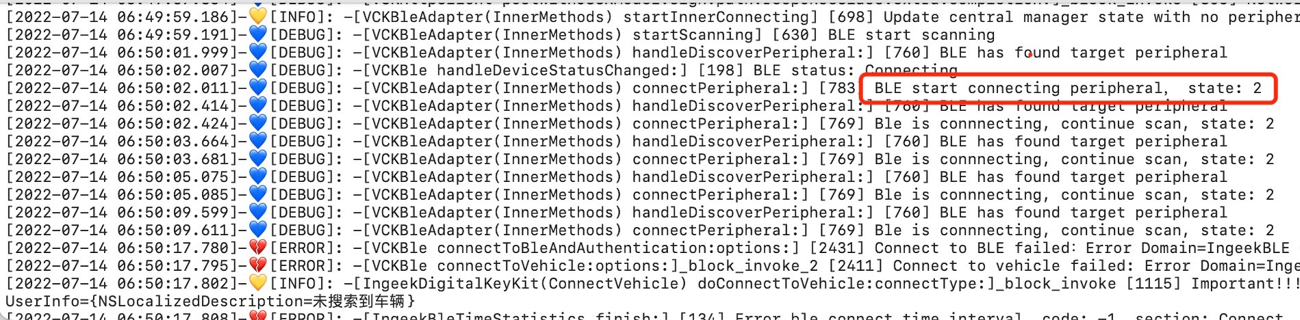 Hi~,We found that the iOS devices scanning peripherals, found the target peripherals, because our peripherals connected will shut down after the broadcast, so at this time also is in a state not connected, but read the state of the peripheral have CBPeripheralStateConnected, and then to connect him, but the connection of the callback methods don't have any results.