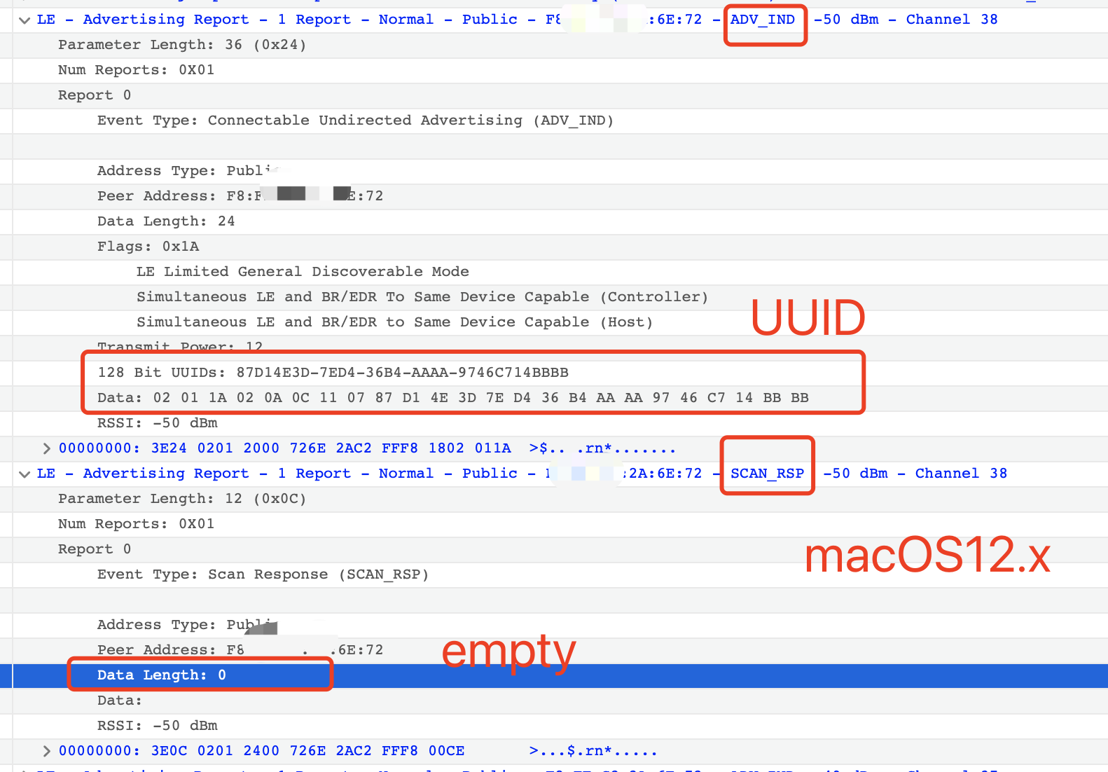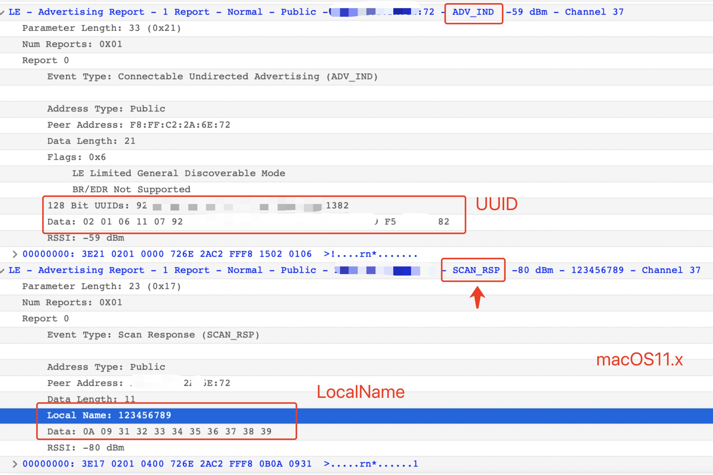 But running after macOS 12.x, if localName exceeds 8 bytes, it will be completely ignored. In the scanned data, localName is empty.