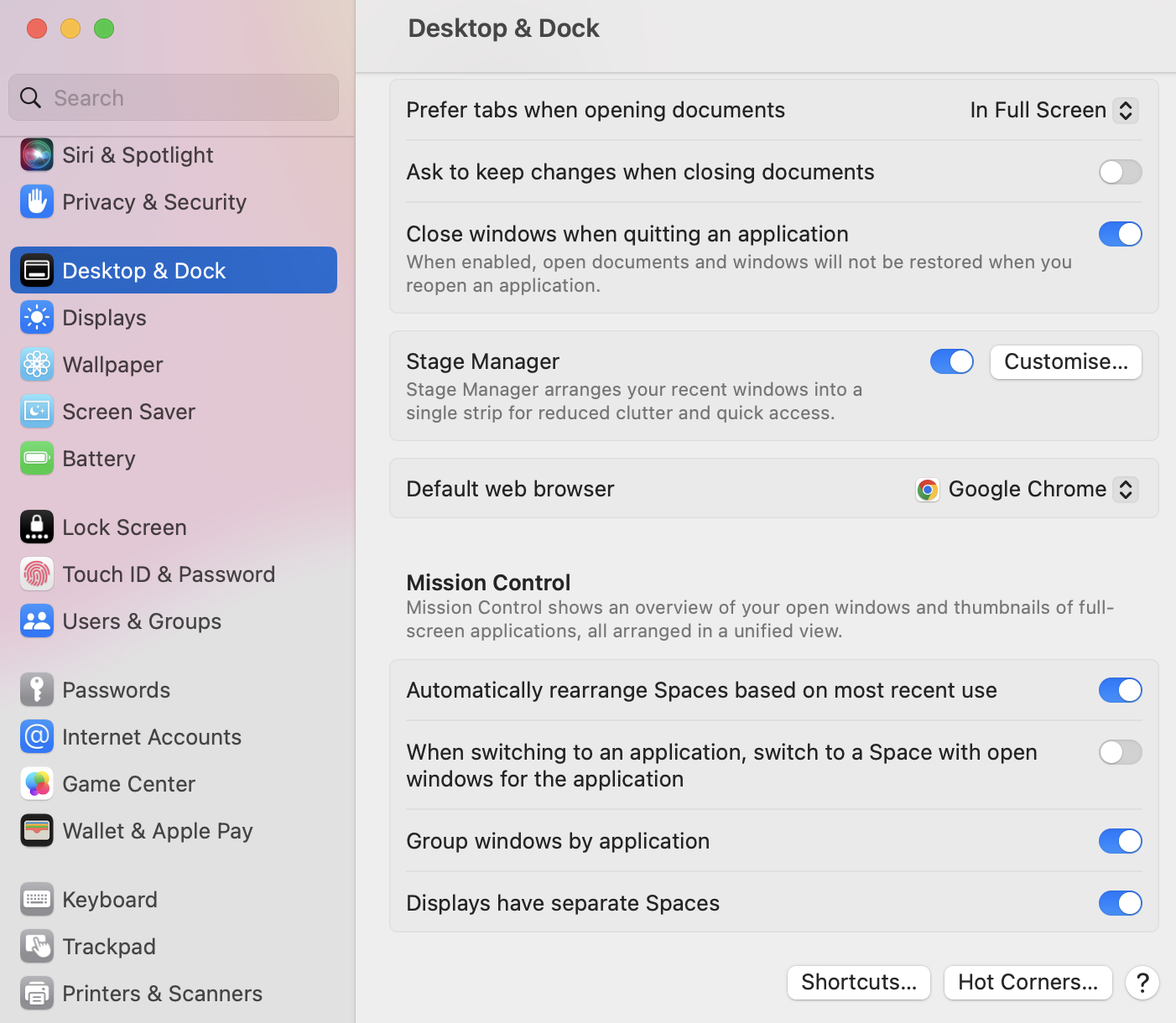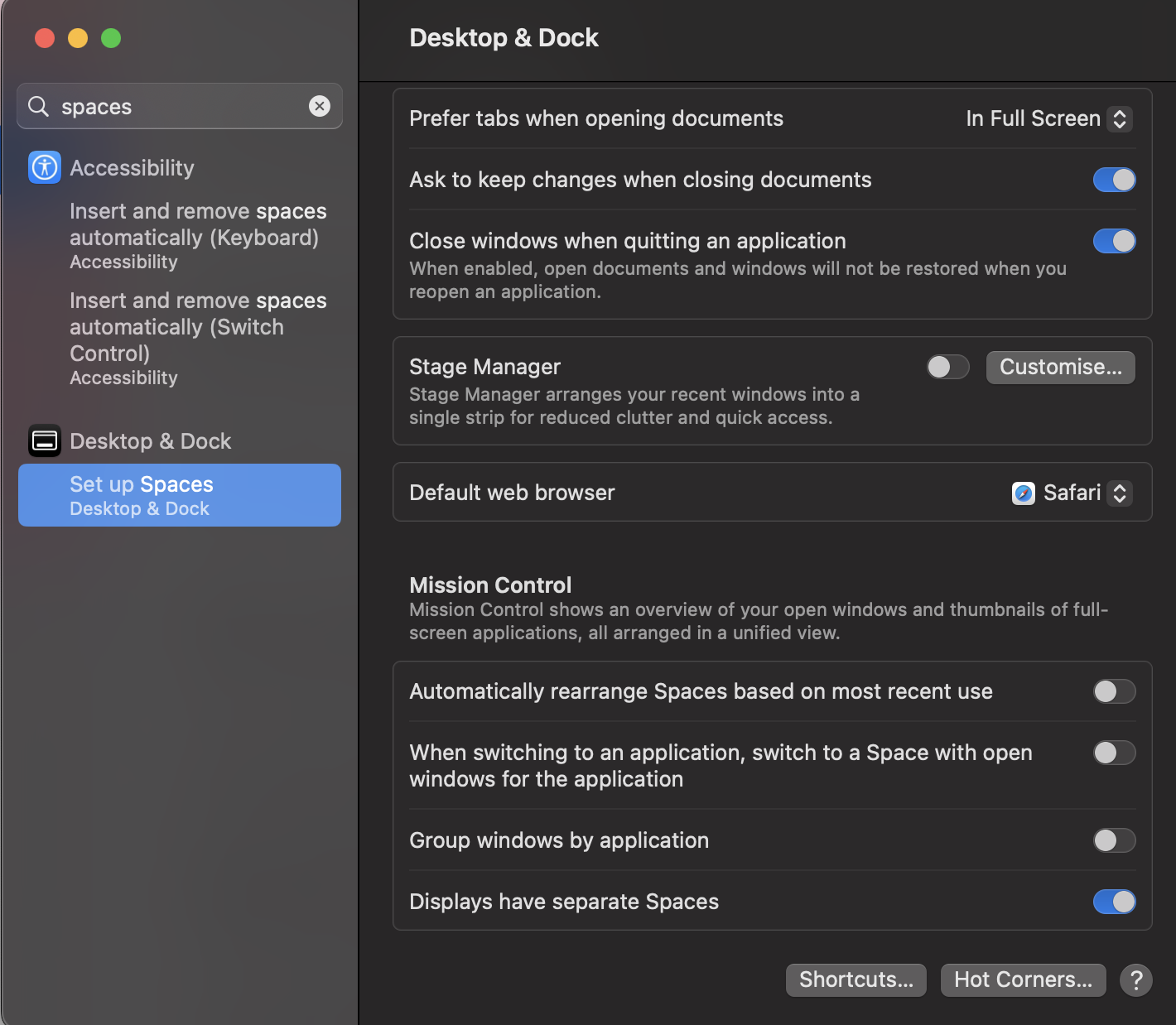 I have updated to Ventura. But there is an option in previous systems. It is in Mission control and it is called "Displays have separate Spaces". Where can I find this in Ventura. Thank you!