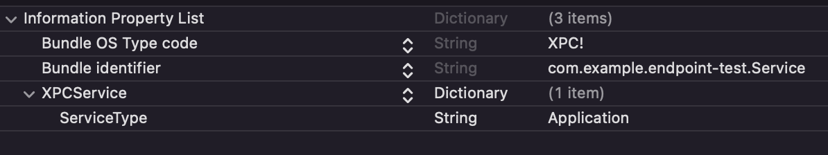 listener = [[NSXPCListener alloc] initWithMachServiceName: @"com.example.endpoint-test.Extension"];