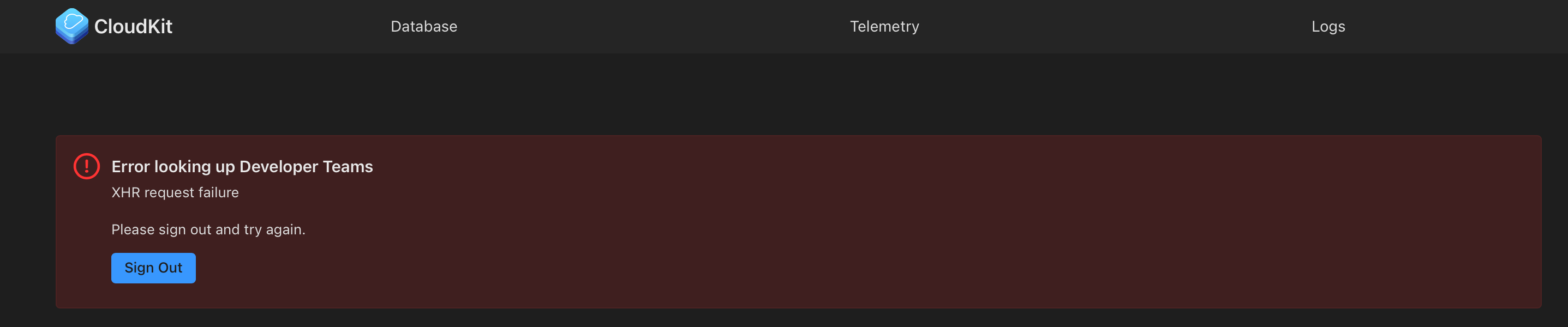 I'm trying to access CloudKit Console and am currently receiving the following error: "XHR request failure"