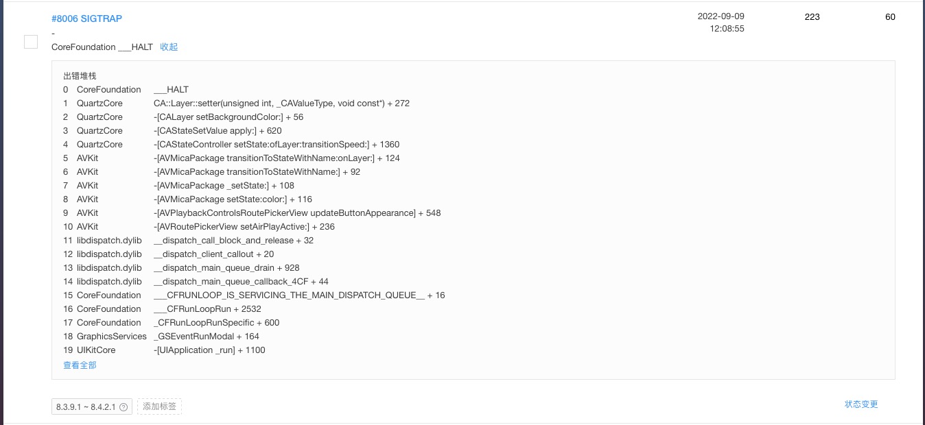 Load the HTML on the WKWebView Nested video tabs inside and then hit Landscape/Full Screen, and the video crashes when it's full screen