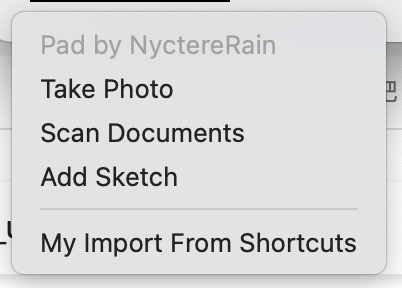 I can add Continuity Camera menu items refereing to Document and sample code by LASER-Yi, what i get is like: