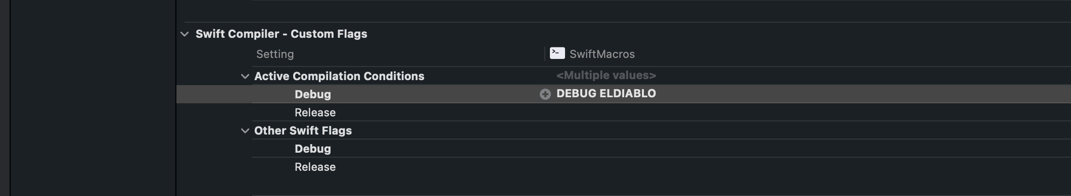 the macro gets added to Swift Compiler - Custom Flags -> Other Swift Flags (shown in the above image besides Active Compilation Conditions).