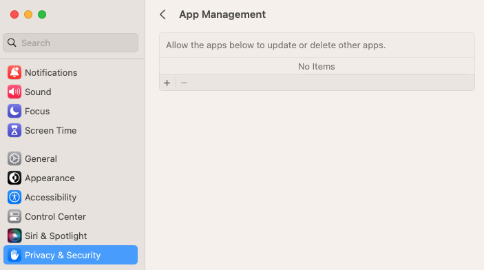 We noticed there had been a new "App Management" permission option under "Privacy & Security" settings introduced in the upcoming Ventura release. It accidentally blocked some of our scripts modifying parts of our product, which, at this point, proved to be problems on our end and can be resolved by us. However, we are in general wary that there doesn't seem to be any documentation on this new option and what behaviors would run into its way. Are there any guidelines Apple can provide?