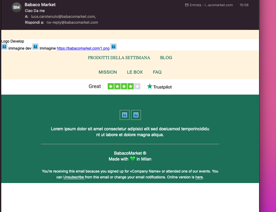 I have a problem with images in email when I open them from Mail app on both desktop and mobile app. Instead of showing the images, there is a question mark surrounded by a blue square (see attached screenshot). This happens only with the apple Mail app, but the images are visible if I access the mails via browser (chrome, safari) or via Gmail app.