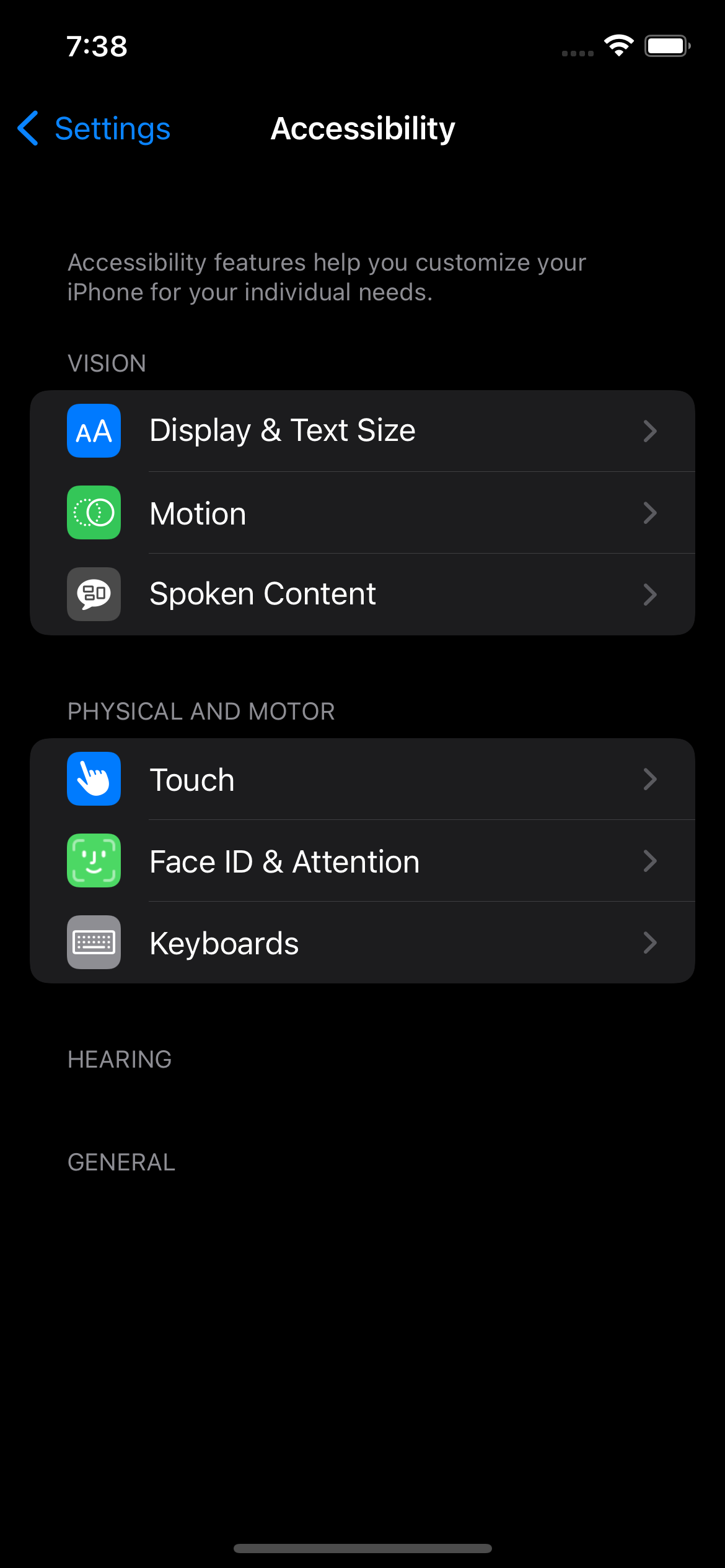 I've been trying to test out some accessibility features on iOS app, but I'm unable to find VoiceOver in Settings > Accessibility. Read few articles how to turn on TalkBack feature but nothing helped as of now. I'm not sure if it's iOS version specific limitation or emulator level.