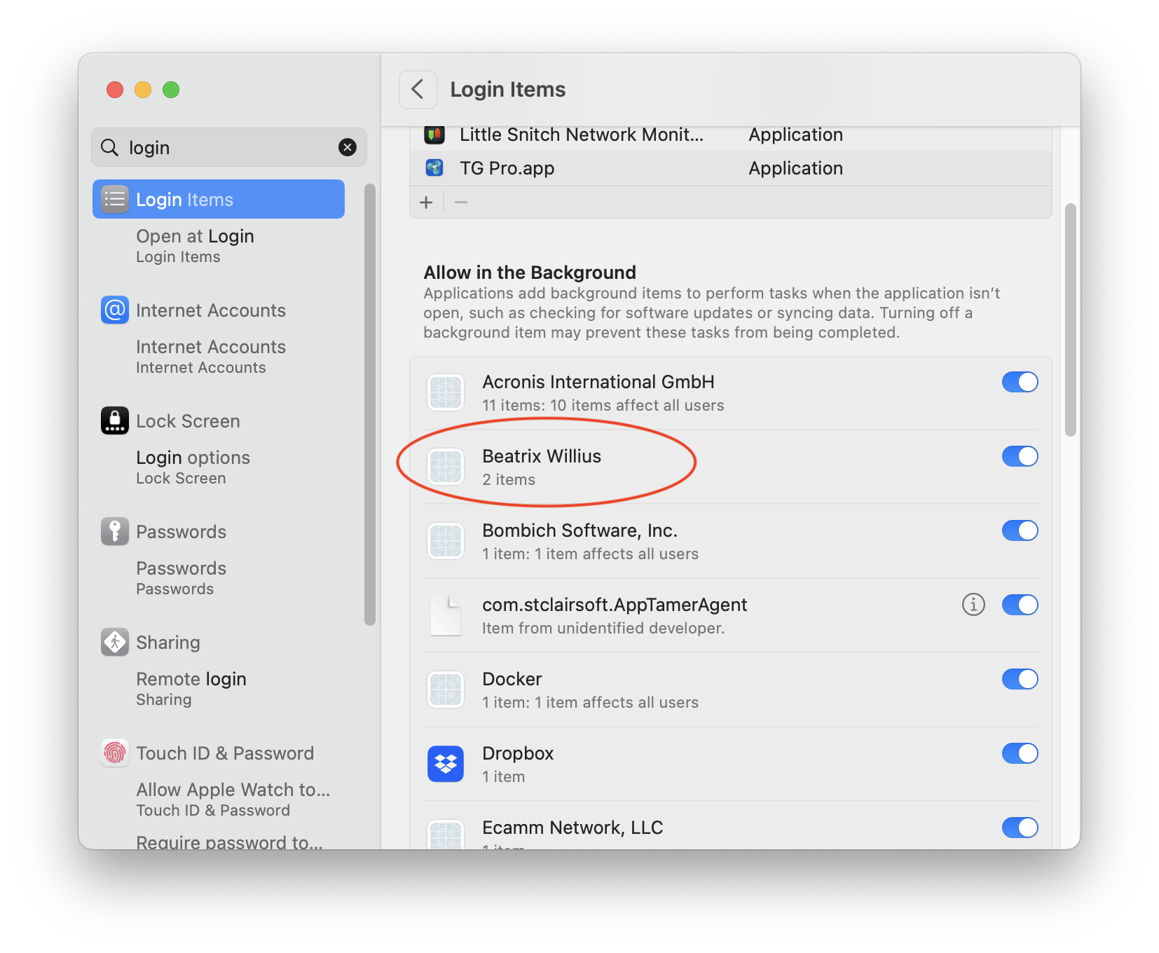 My application Mail Archiver needs a login item. When I write the login item for Ventura the system asks if my name can be added to the login items and not the app name. I can see that other apps have the app name in the login items and not the developer name.