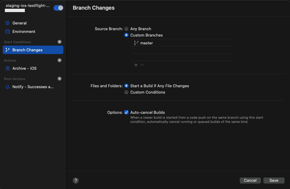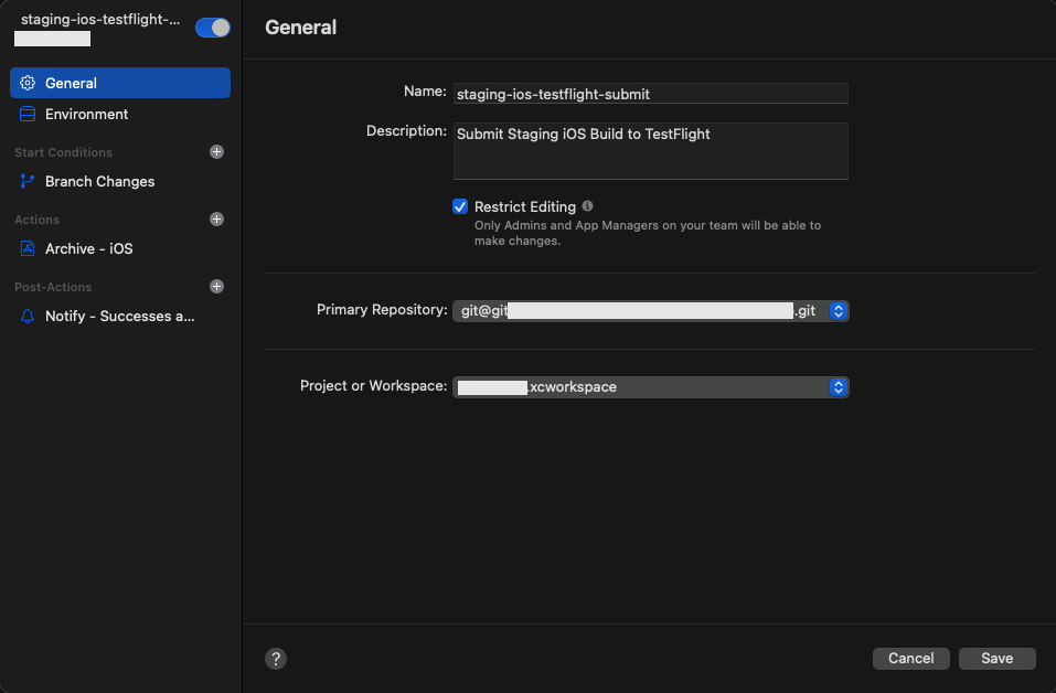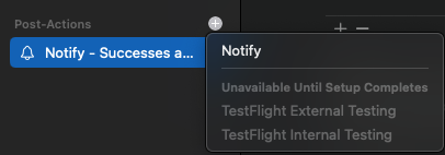 I want to submit a build directly to TestFlight review from Xcode Cloud after a successful build. But the post actions are disabled.