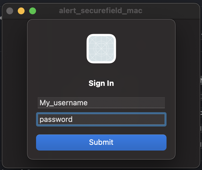 The SecureFields in the alert function fine as TextFields but are not obscured ('password' -> '********'), which raises a major security risk. I have tested the exact same code on iOS and the SecureFields are obscured as intended (see below screenshots).