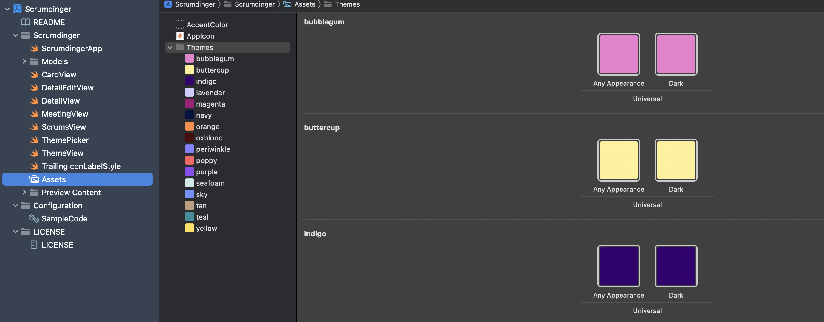 I was expecting to see the color in the ThemePicker (as shown in the preview of step 8 and in the animation at the end of the page). My code didn't show any color. After tinkering around for some time with my own code, I downloaded the project files from Apple and tried it with the files in the "Completed" folder. Still the color is not showing up.