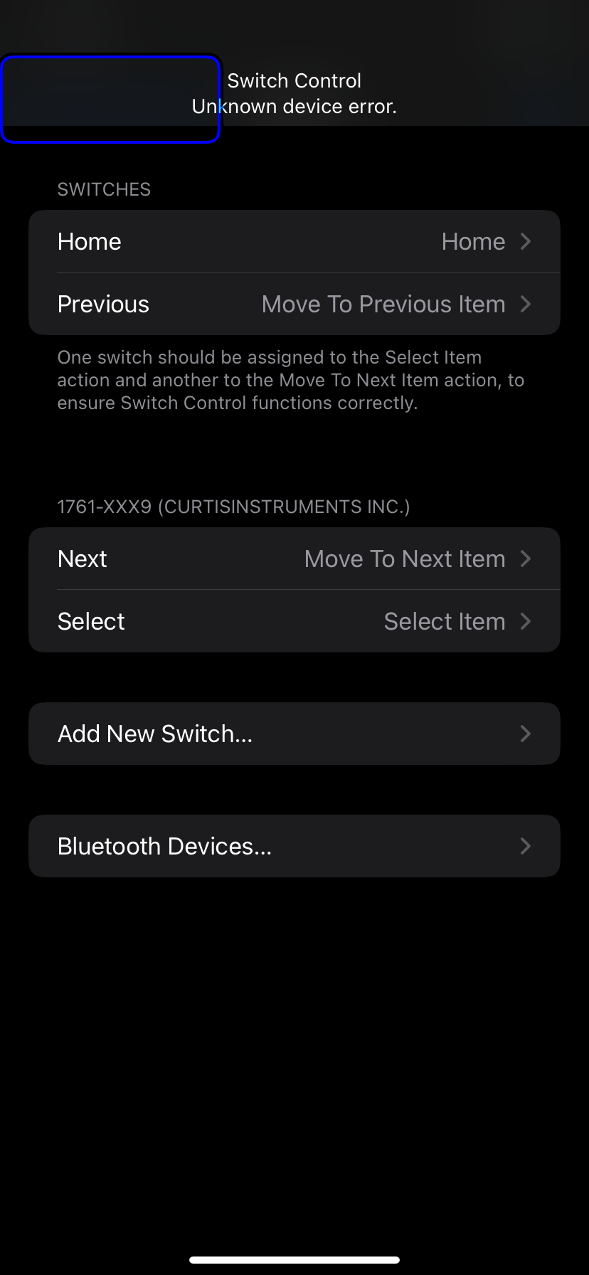 Hi, we are a control system manufacturer for power wheelchairs. We interface mobile devices via Bluetooth to get wheelchair users access to their mobile devices. Our connection is MFi certified since several years. Since iOS 16 the error message "Switch Control Unknown device error." is displayed when using Switch Control to operate the iPhone / iPad from the wheelchair.