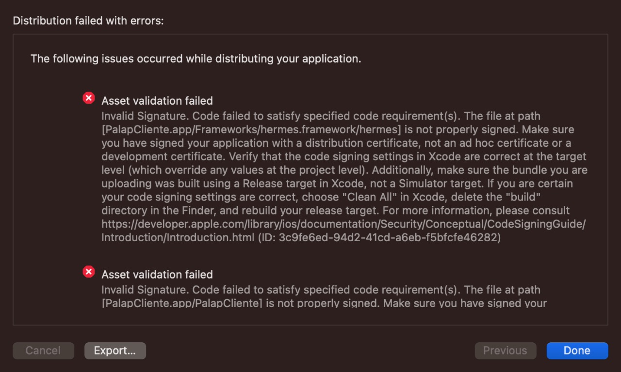 I am getting this error when distributing the app in XCODE. I don' t know what to do.