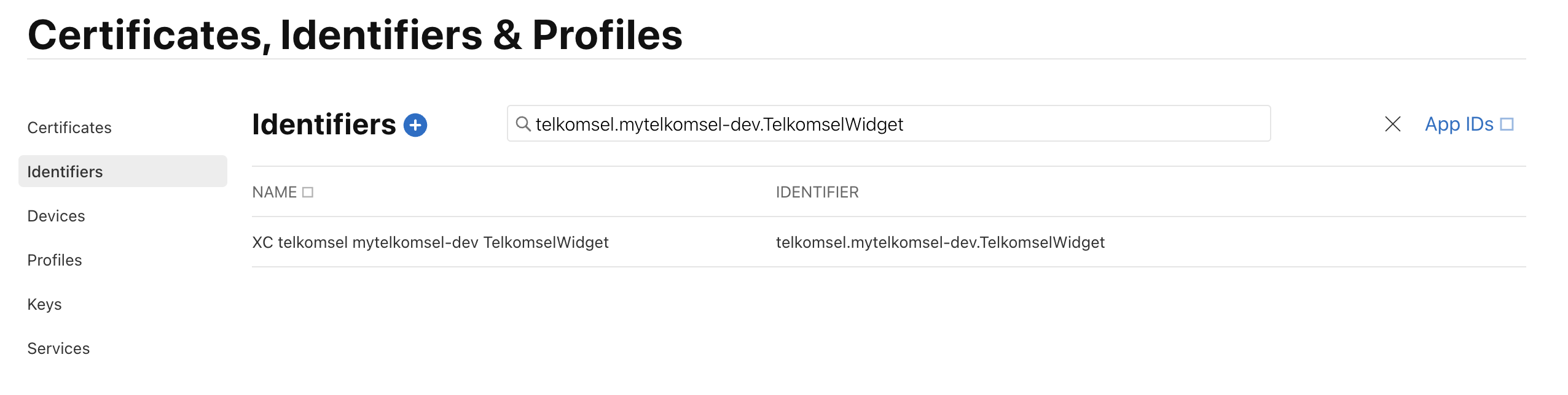 why in xcode can't get provisioning profile telkomsel.mytelkomsel-dev.TelkomselWidget but in developer account exist? Have any of you ever experienced something like this, if so please let me know how to fix it. Thank you