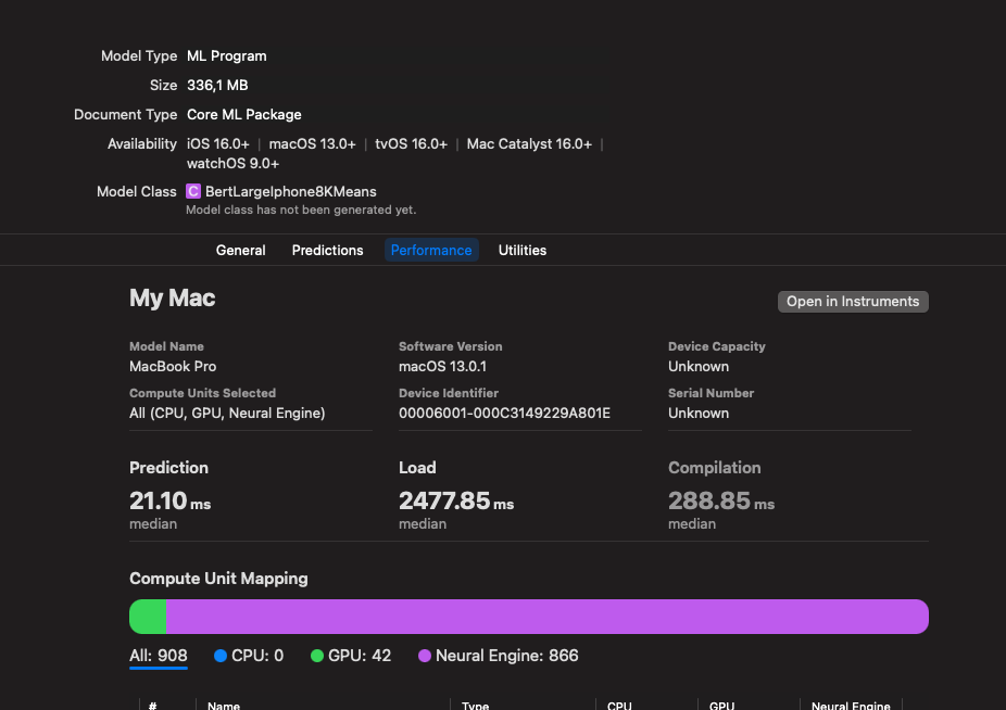 I have a BERT-large model that has been quantised to 16 bits. According to the performance report, the model takes about 500 ms to load: