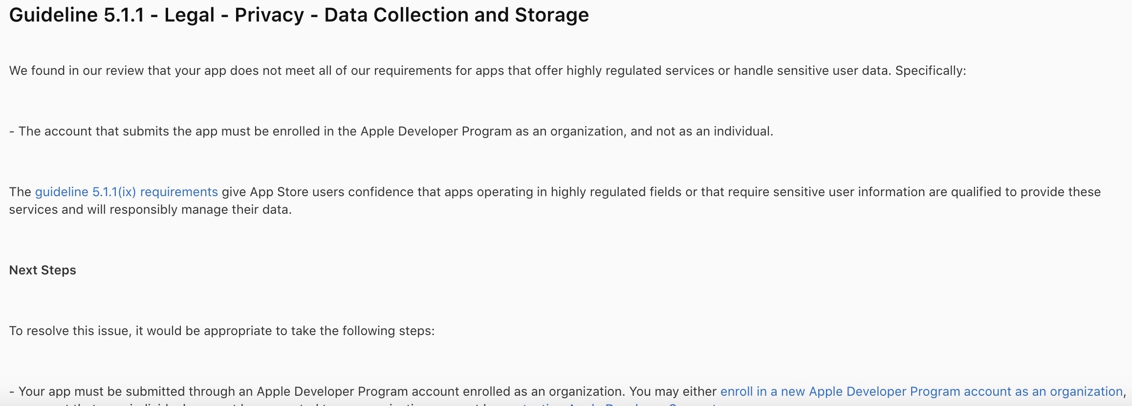 App Submission Issue (Not registered as an organisation)