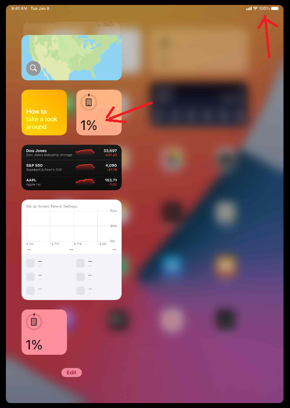 I found and intresting but. As you can see in attached image, battery charged percentage is howing 100% on statusbar but in battery widget it is showing 1% only