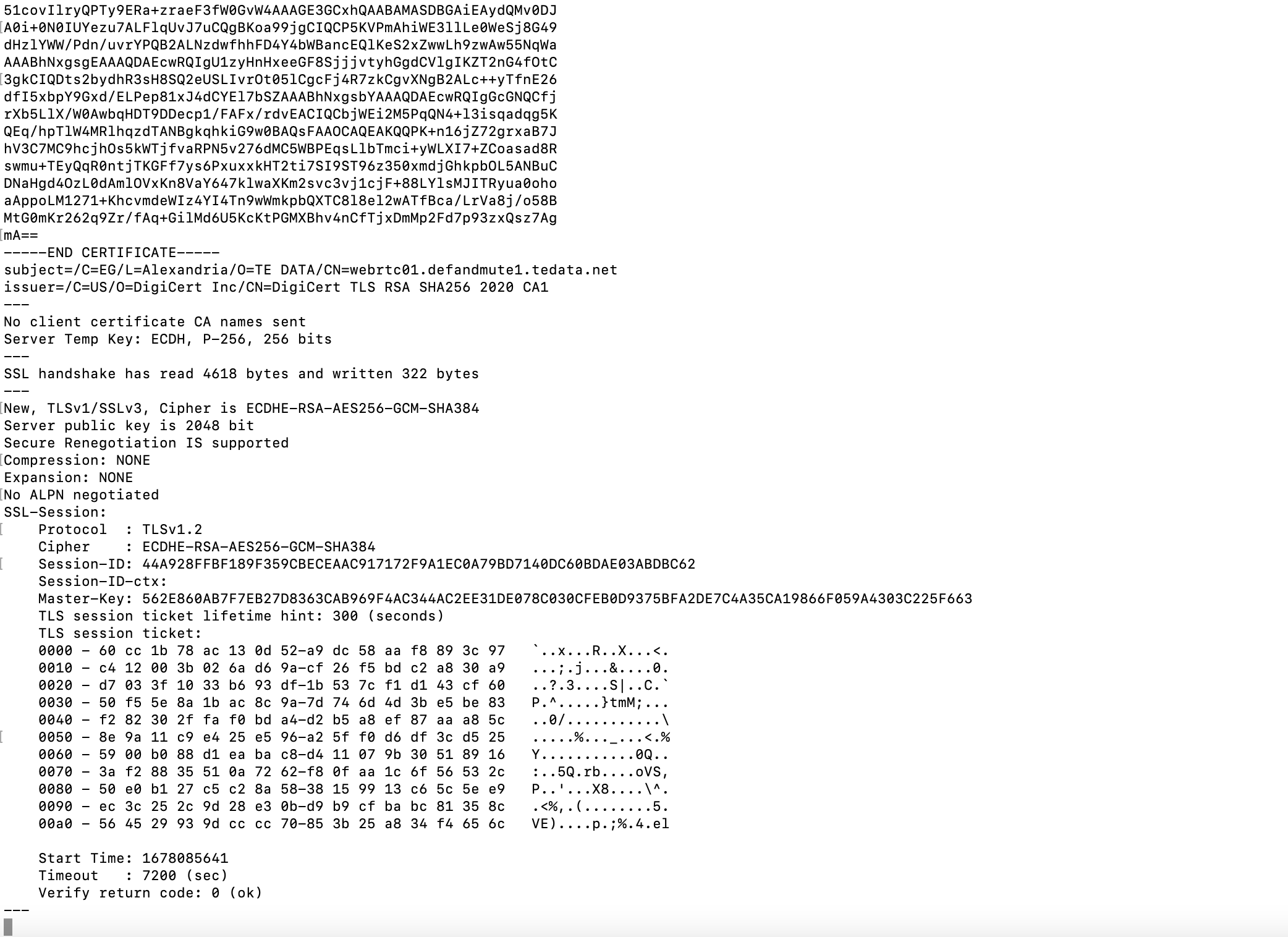 Thanks for that. Unfortunately I need some extra info from you. Please repeat what you just did, but this time include the -showcerts