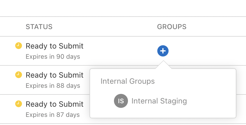 Today TestFlight is not allowing to add a group to a new build. When clicking on + icon in group column, the groups are disabled.