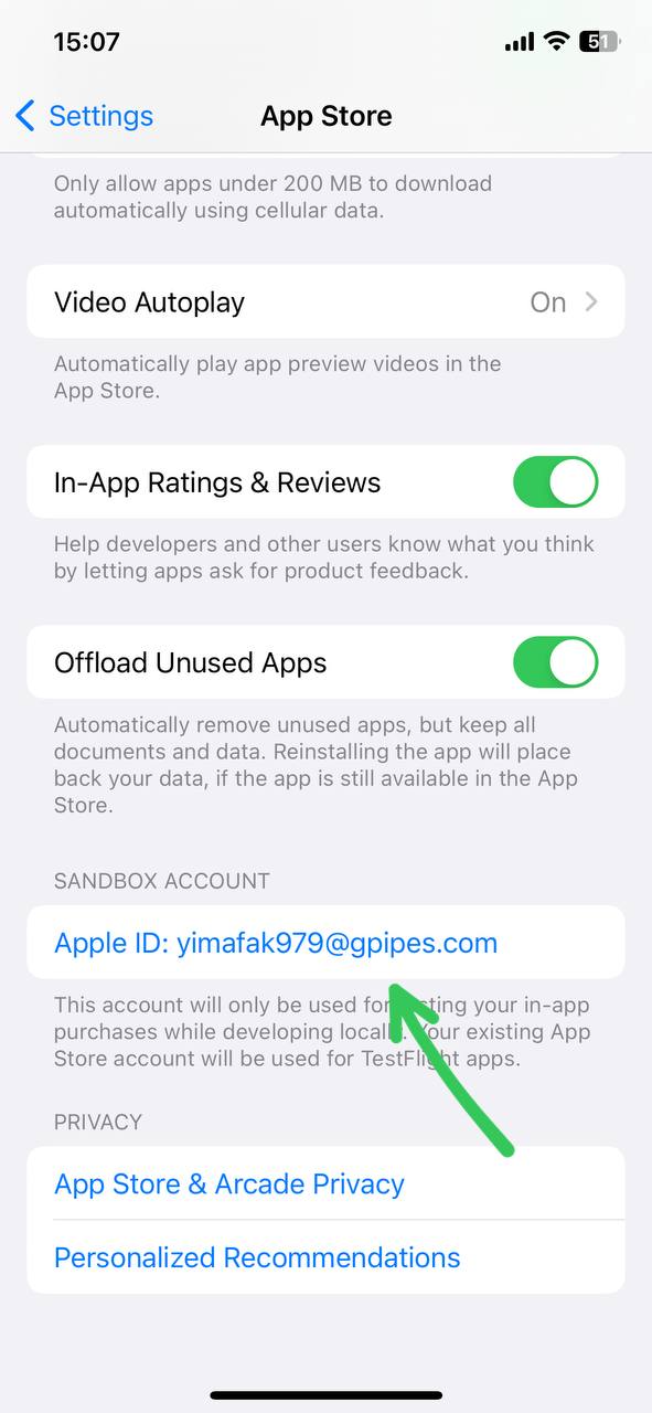 payment pop-up opens with my Apple ID and not with the sandbox account