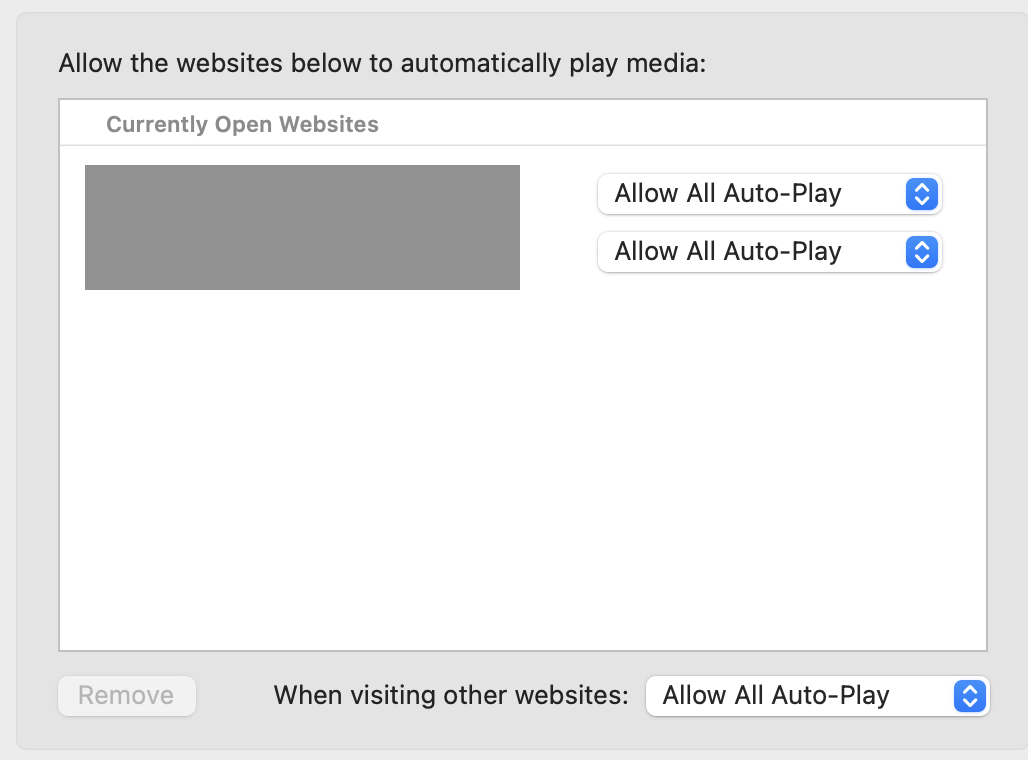 The programatic playing of videos gets blocked even though the browser settings specifically should allow all video plays.