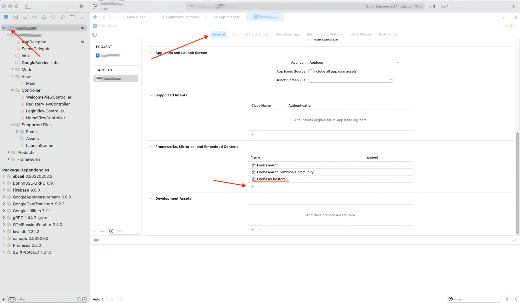 Click on your project, go to General tab, at the bottom you have Frameworks, Libraries and Embedded Content, click on the + and add the FirabaseFirestore.