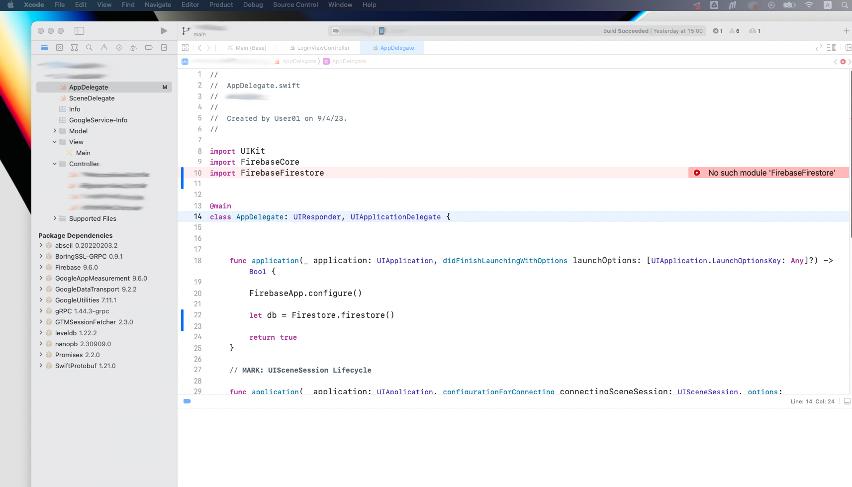 Interesting, I am just learning iOS, and during my courses I used Firebase but installed via CocoaPods, this time I added the package via add packages and when I want to use the Firestore DB to add in the app delegate also get this error, wonder what the issue could be.