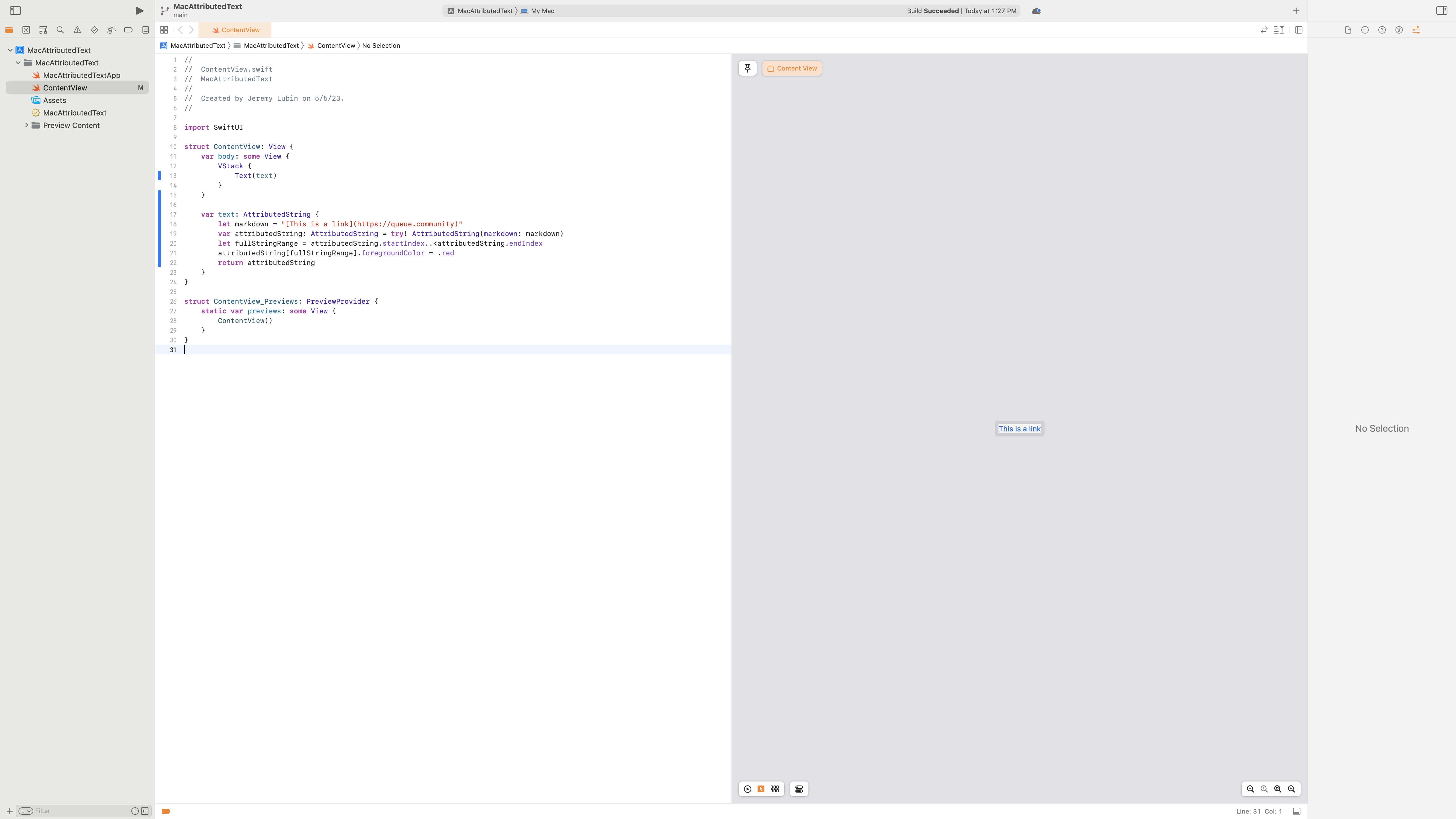 let markdown = "[This is a link](https://queue.community)"