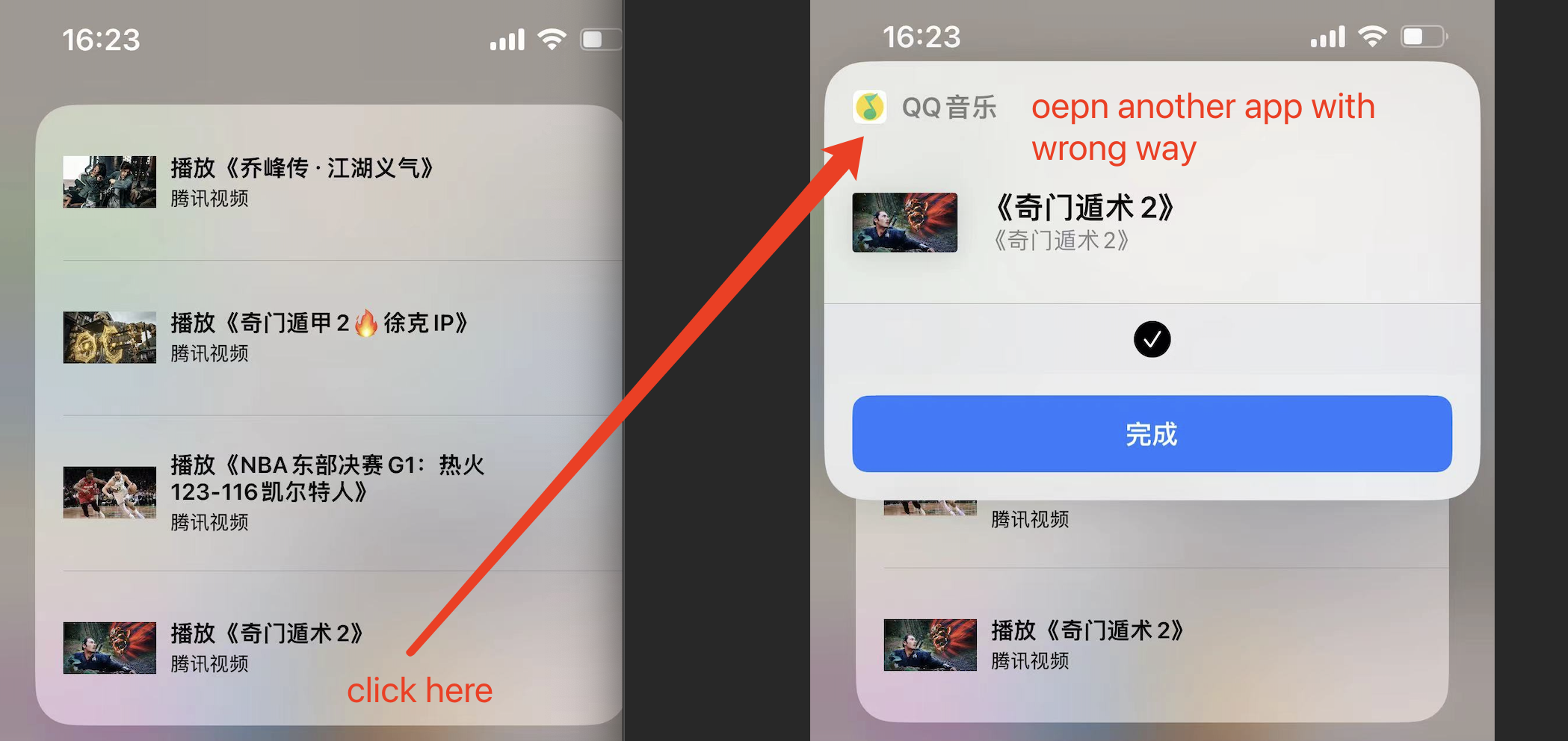 I added siri suggestion to the app for a while,it works well.But some day,as shown in the picture,when I clicked on my siri suggestion, it opened another app. If the system showed siri suggestion to my app, why did it open another app by mistake? Can someone tell me what the reason is?