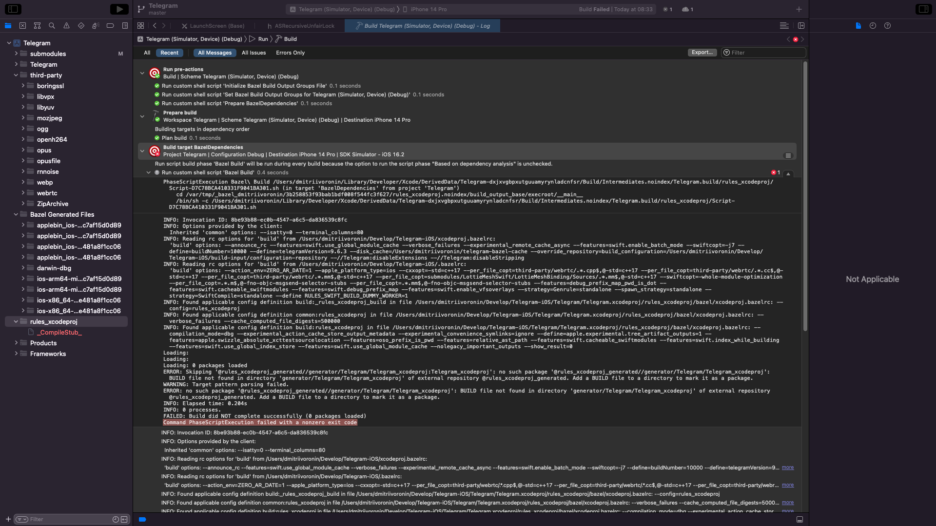 Hello. I have an issue while building Telegram-iOS project in XCode with Bazel as a building system. Here is screenshot.