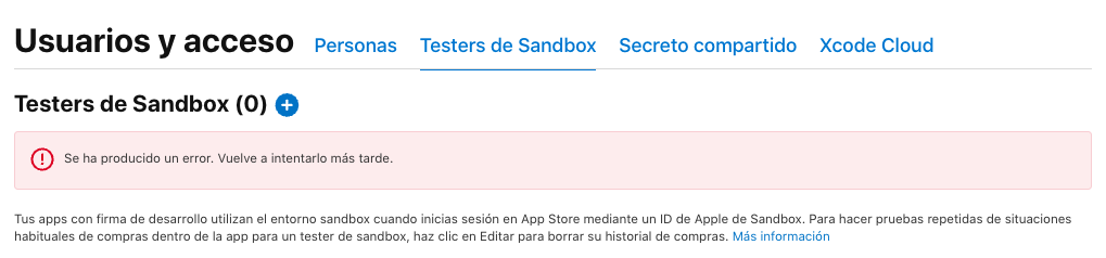 Hi All, we have noticed that we're not able to create new sandbox testers in App Store Connect nor view previously created ones. The following error appears since yesterday: