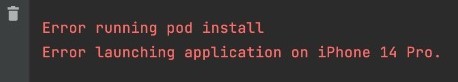 I tried to run my application in Visual Studio Code app and Android Studio app, but in both apps I got this error message "Error running pod install, error launching application on iPhone 14 Pro"