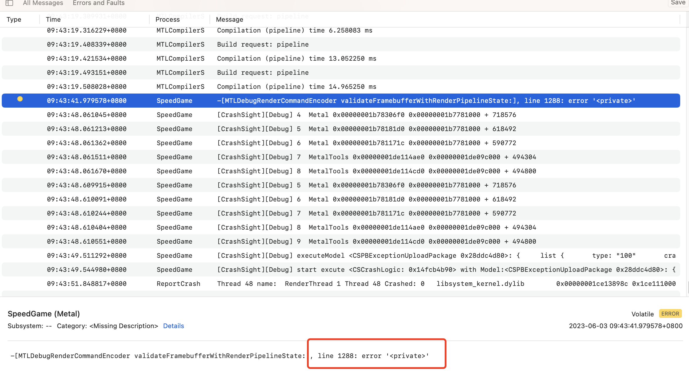 When I only set MTL_DEBUG_LAYER=1, I got the validation crash report, but the report is so simple like this: