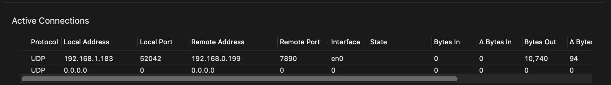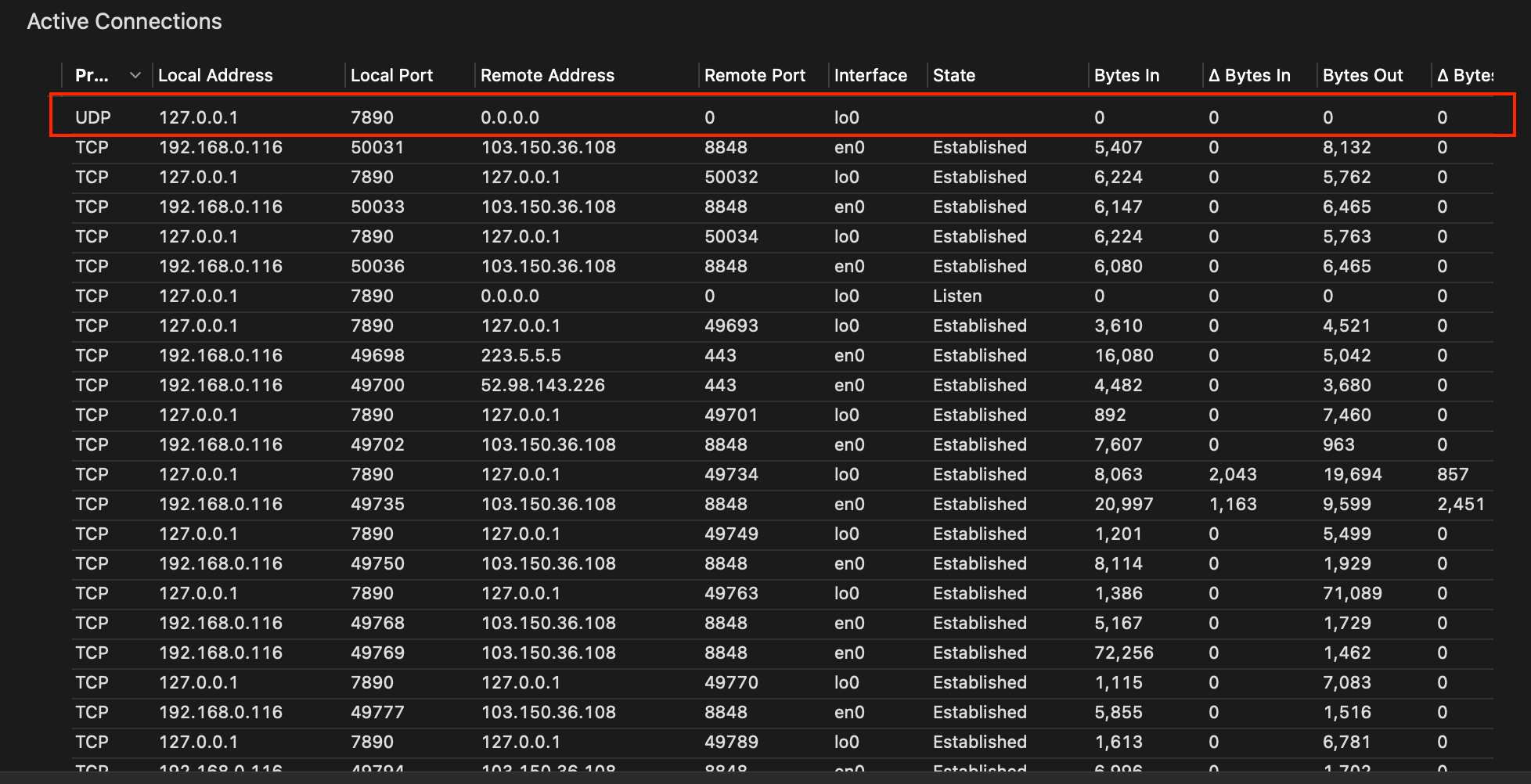 However, in the debug tool, I couldn't see any UDP traffic which I'm sure there should be some. The only UDP connection had no traffic constantly.