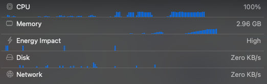 This only happens if it 'Increase Contrast' is turned ON, the CPU and memory spike does not occur when it is OFF.